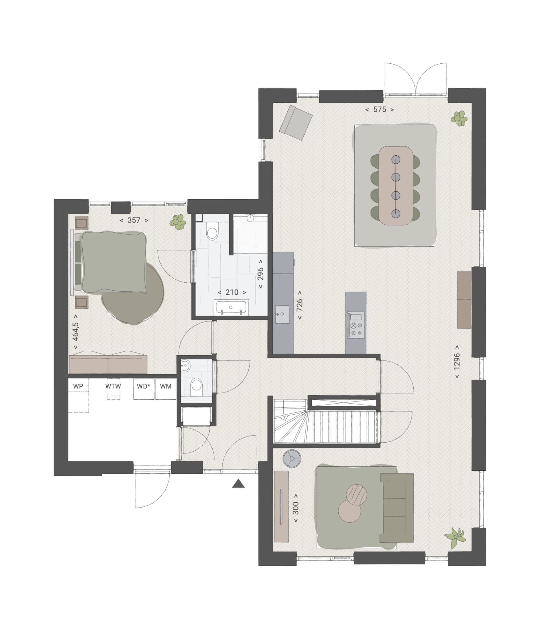 - Optioneel extra slaapkamer(s) en badkamer op de 1e verdieping.